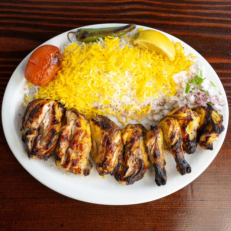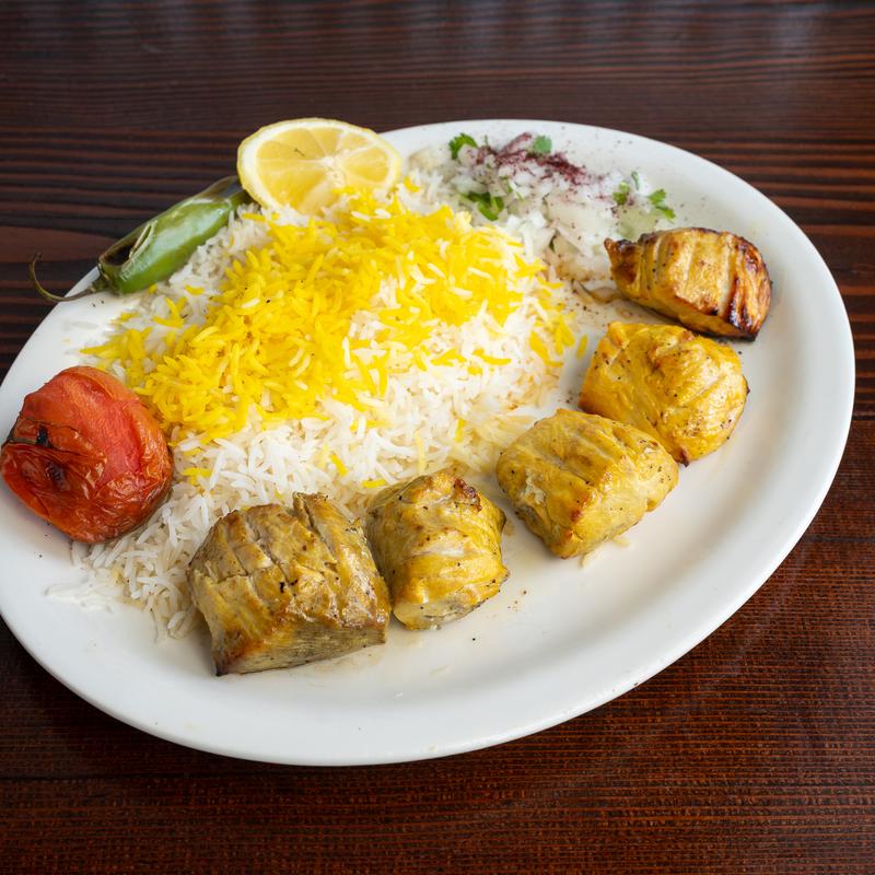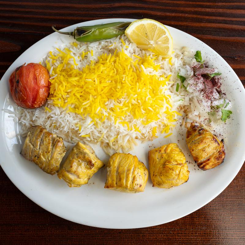 Marinated in saffron, lemon juice, yogurt and Persian spices