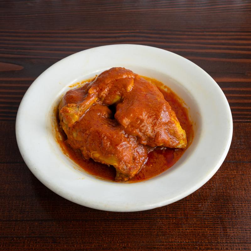 2 bone-in chicken thigh quarters steamed in tomato sauce and saffron